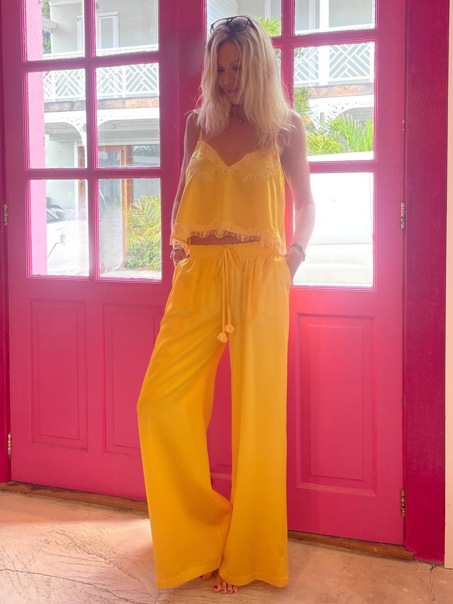 Elevate your wardrobe with our PANT SMOKE SATIN SILK - a perfect combination of comfort and fashion. Featuring a regular fit and smocked waist for the perfect fit, it pairs seamlessly with our matching Ovni Top for effortless and chic everyday wear.